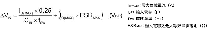 輸入漣波電壓ΔVIN利用以下公式可以算出。